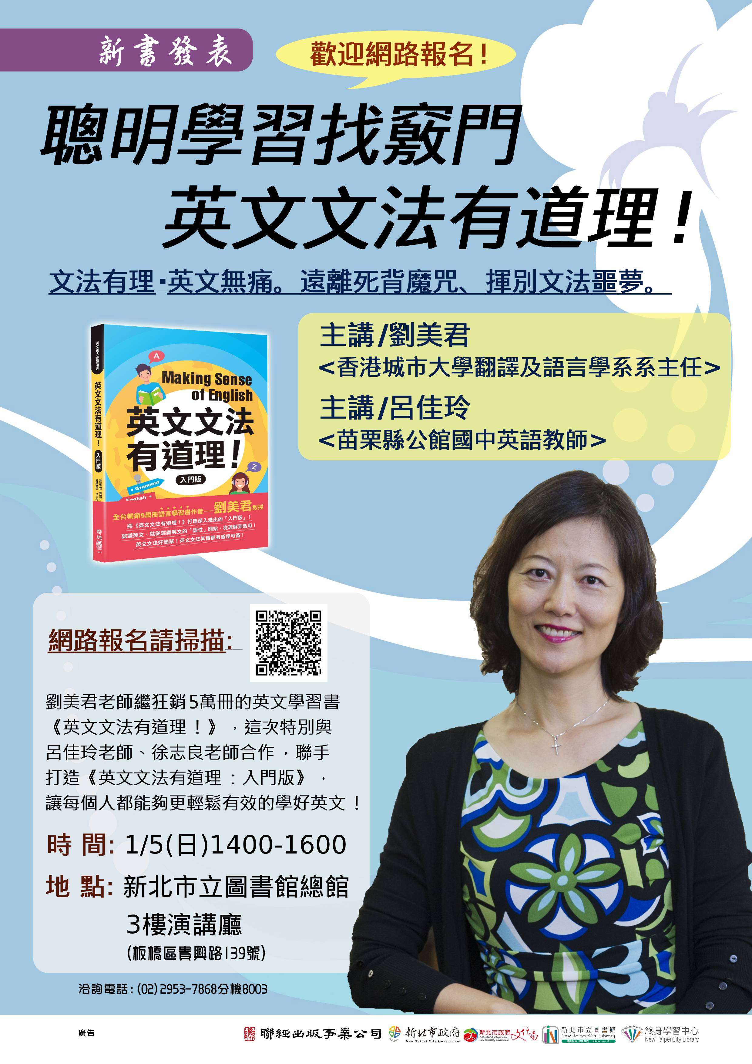 二、1月5日(日)香港城市大學翻譯及語言學系主任劉美君老師分享「聰明學習找竅門,英文文法有道理」,要讓每個人都能輕鬆學好英文。