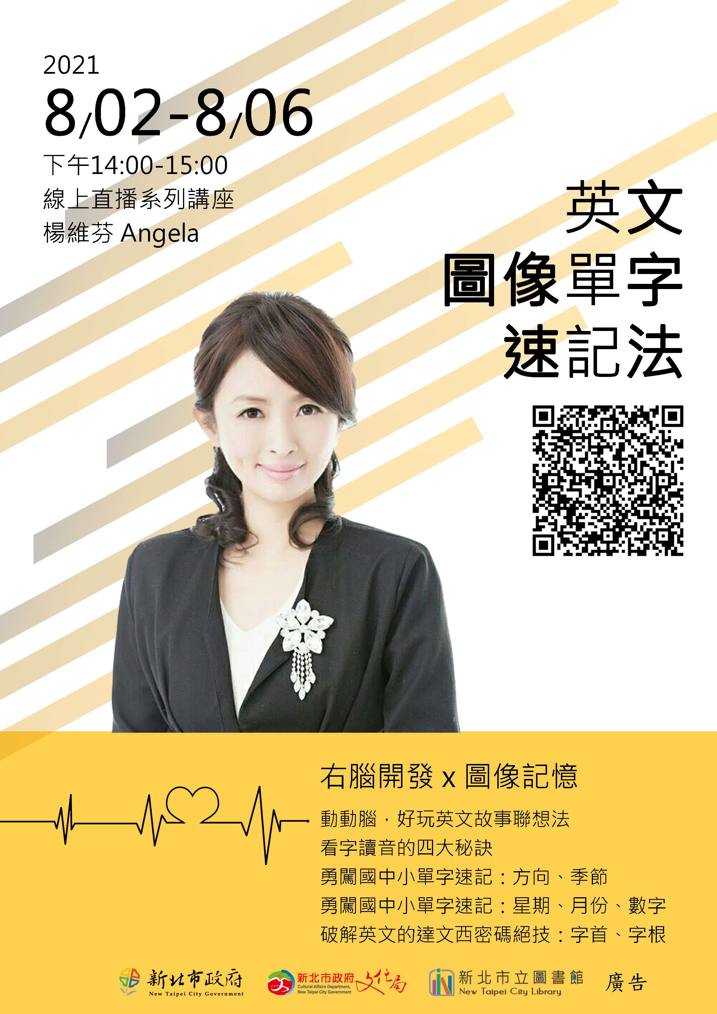 一、為推動閱讀風氣,提供終身學習管道,本館特邀請擅長腦力開發/右腦英語單字速記的專任講師-楊維芬(現職:財團法人大河文教基金會教育長),教導善用聯想、邏輯,統整各種相關詞彙,用圖像速記功能、聽覺加深印象,將單字鎖進大腦長期記憶區!