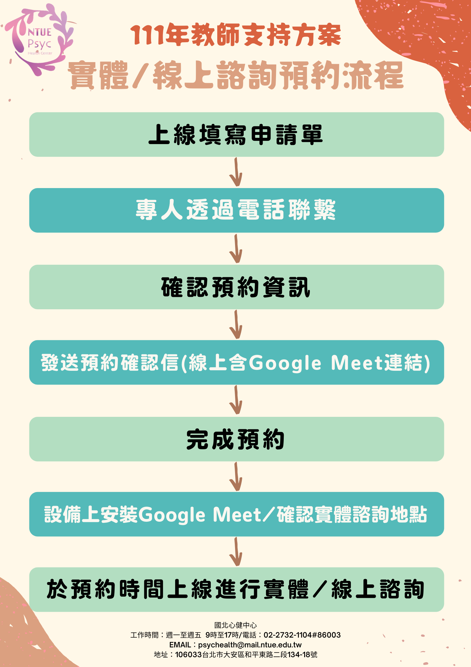 3、倘有任何需求,可逕洽國北心健,電話(02)2732-1104
