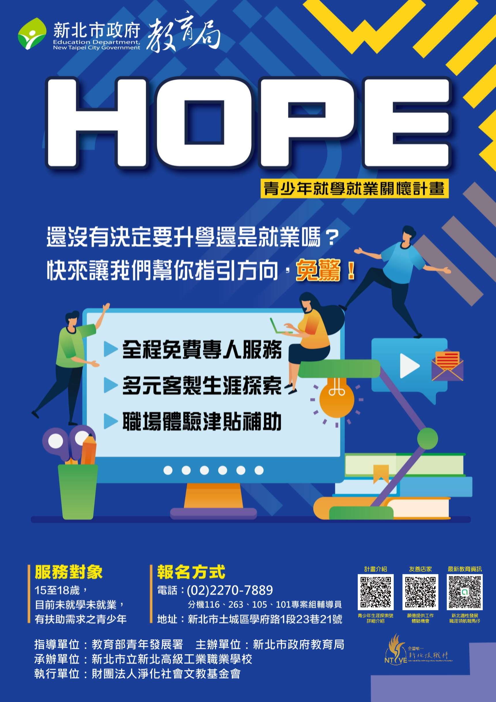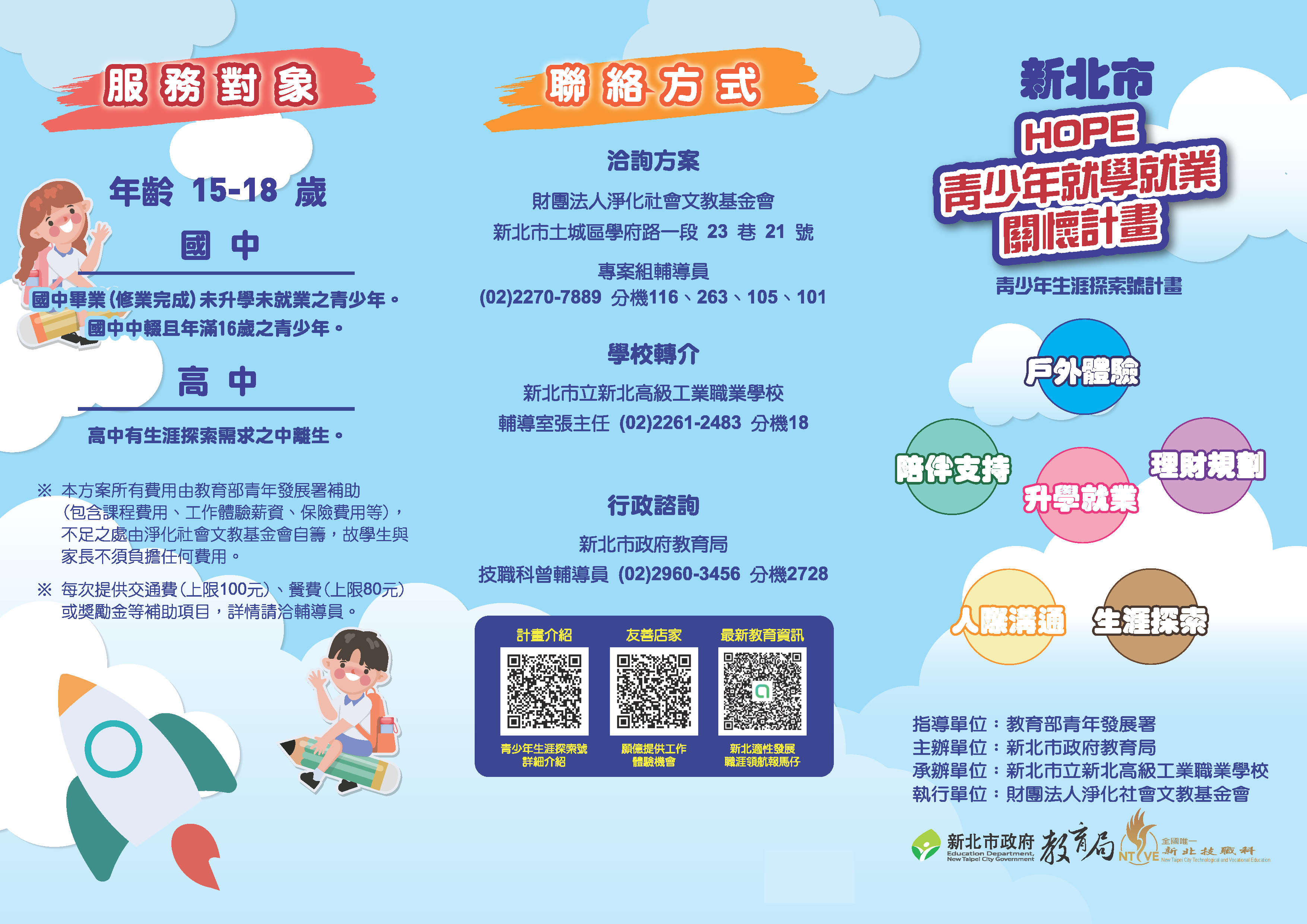 一、依據「新北市HOPE青少年就學就業關懷計畫」暨「112年青少年生涯探索號計畫」辦理。