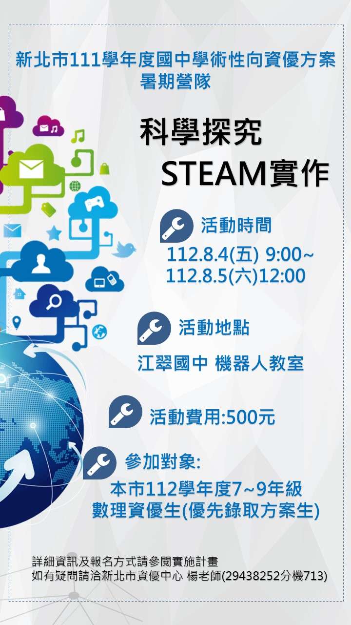 主旨:「新北市111學年度公私立國中資優方案學生STEAM暑期營隊」。