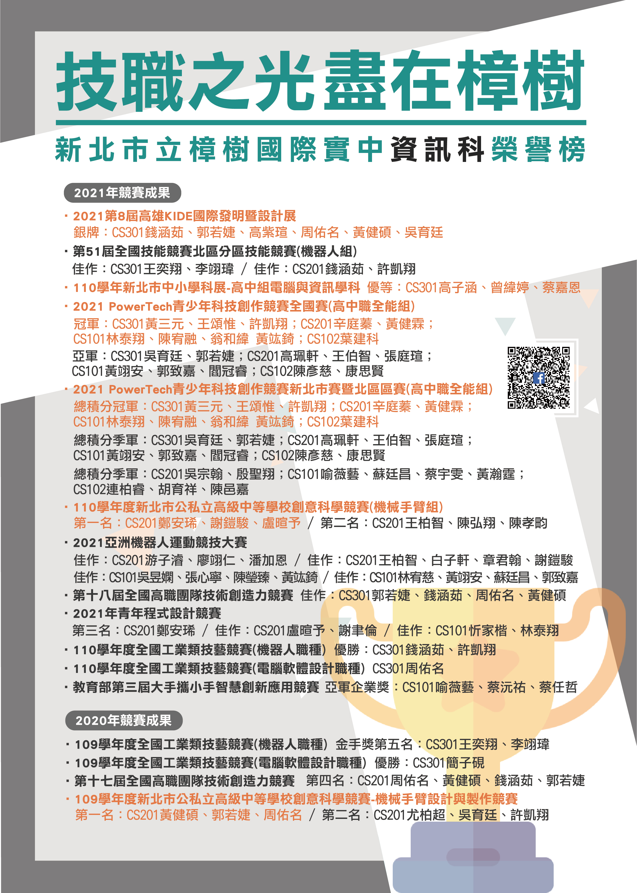 更多競賽成果,可點擊各科榮譽榜及最新公告瀏覽唷~~~