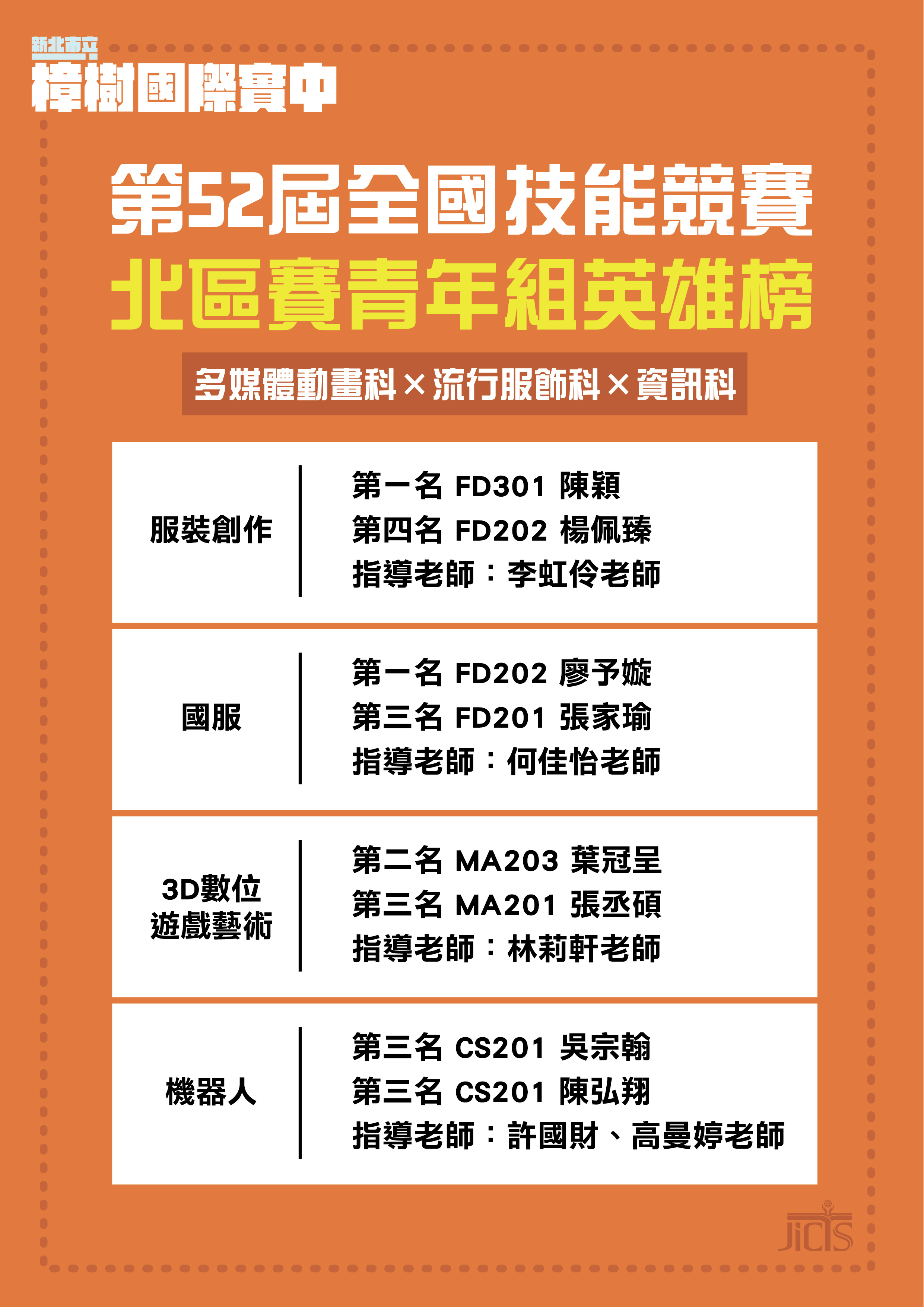 恭喜各科第52屆全國技能競賽-青年組北區賽成績輝煌~
