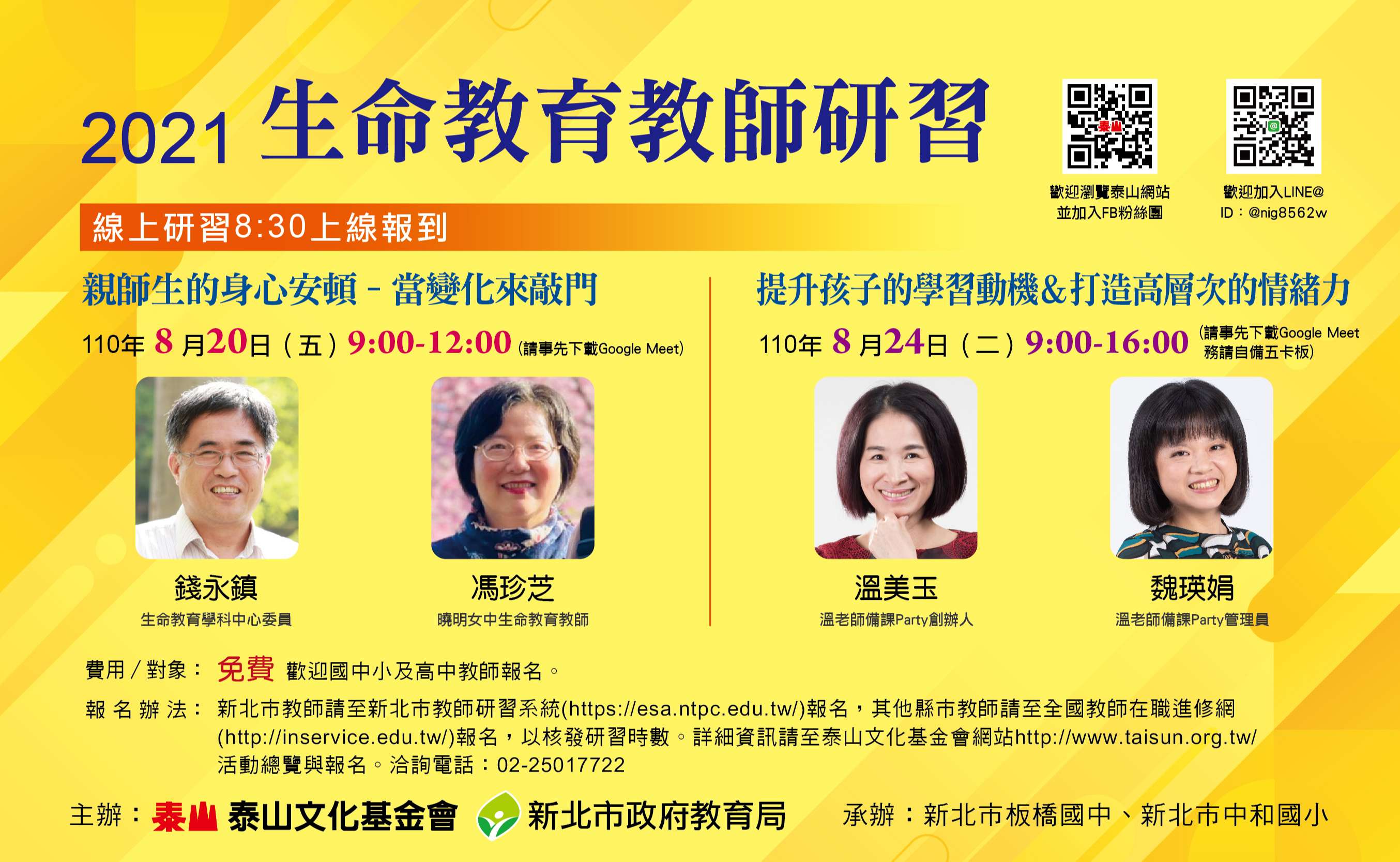 報名方式:即日起至「新北市教師研習系統」登錄報名,截止期限至活動前2日止。