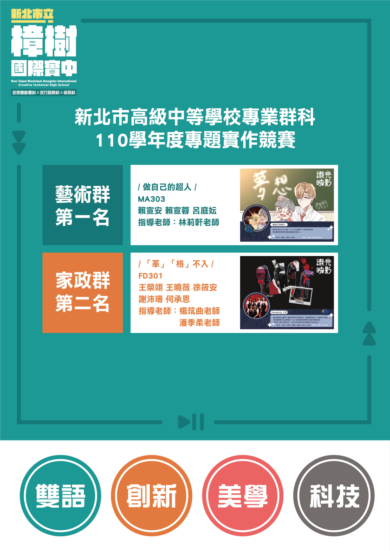 恭喜「參加新北市高中職專業群科110學年度專題實作競賽」同學