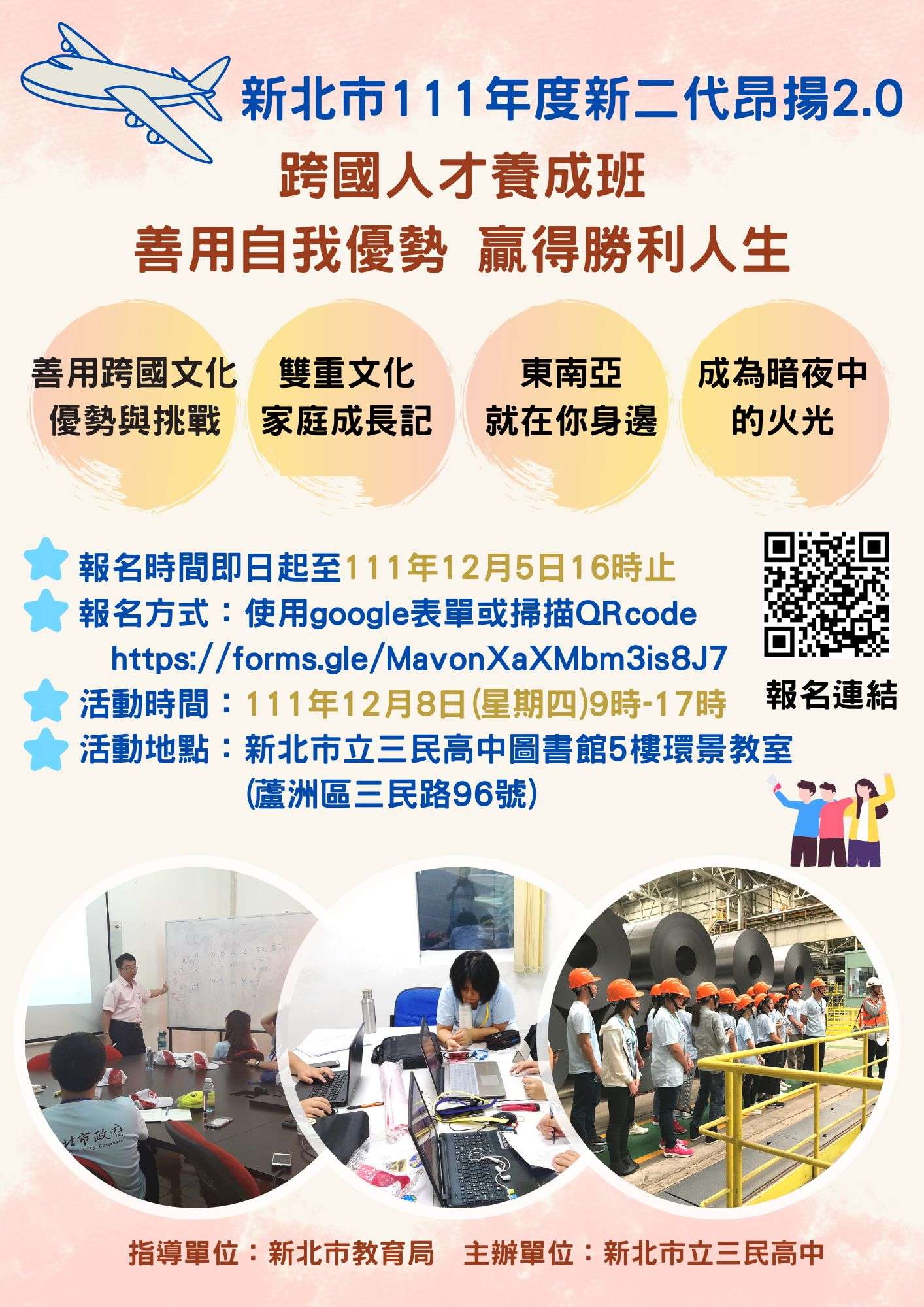 辦理地點:新北市立三民高中圖書館5樓環景教室。
