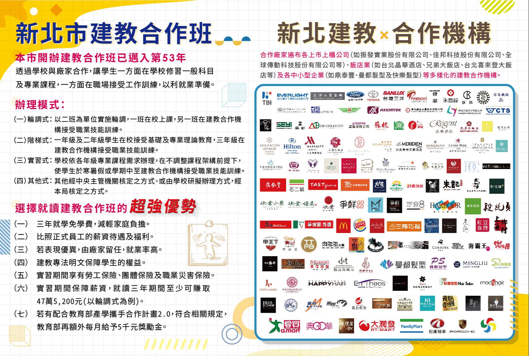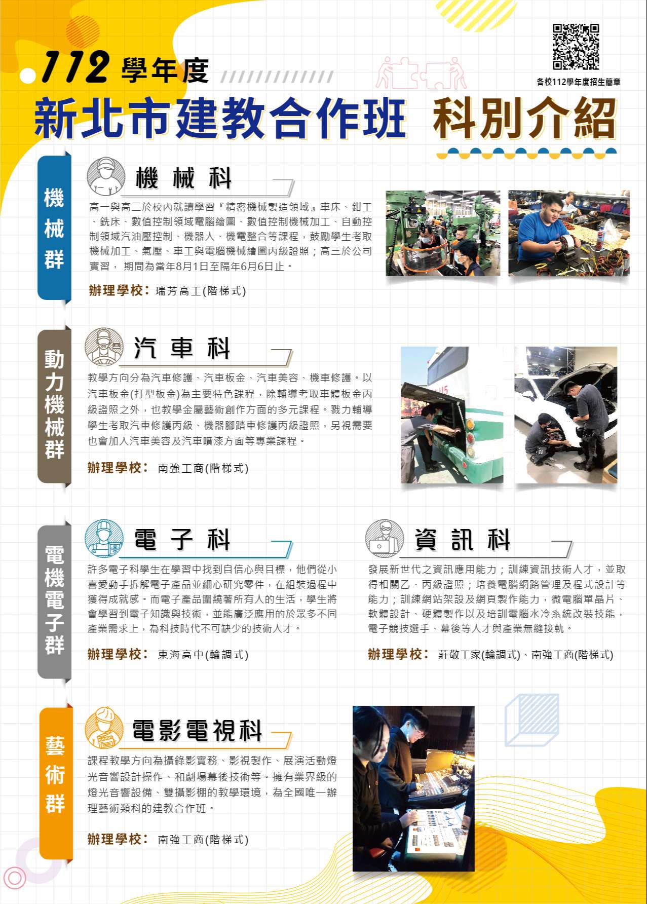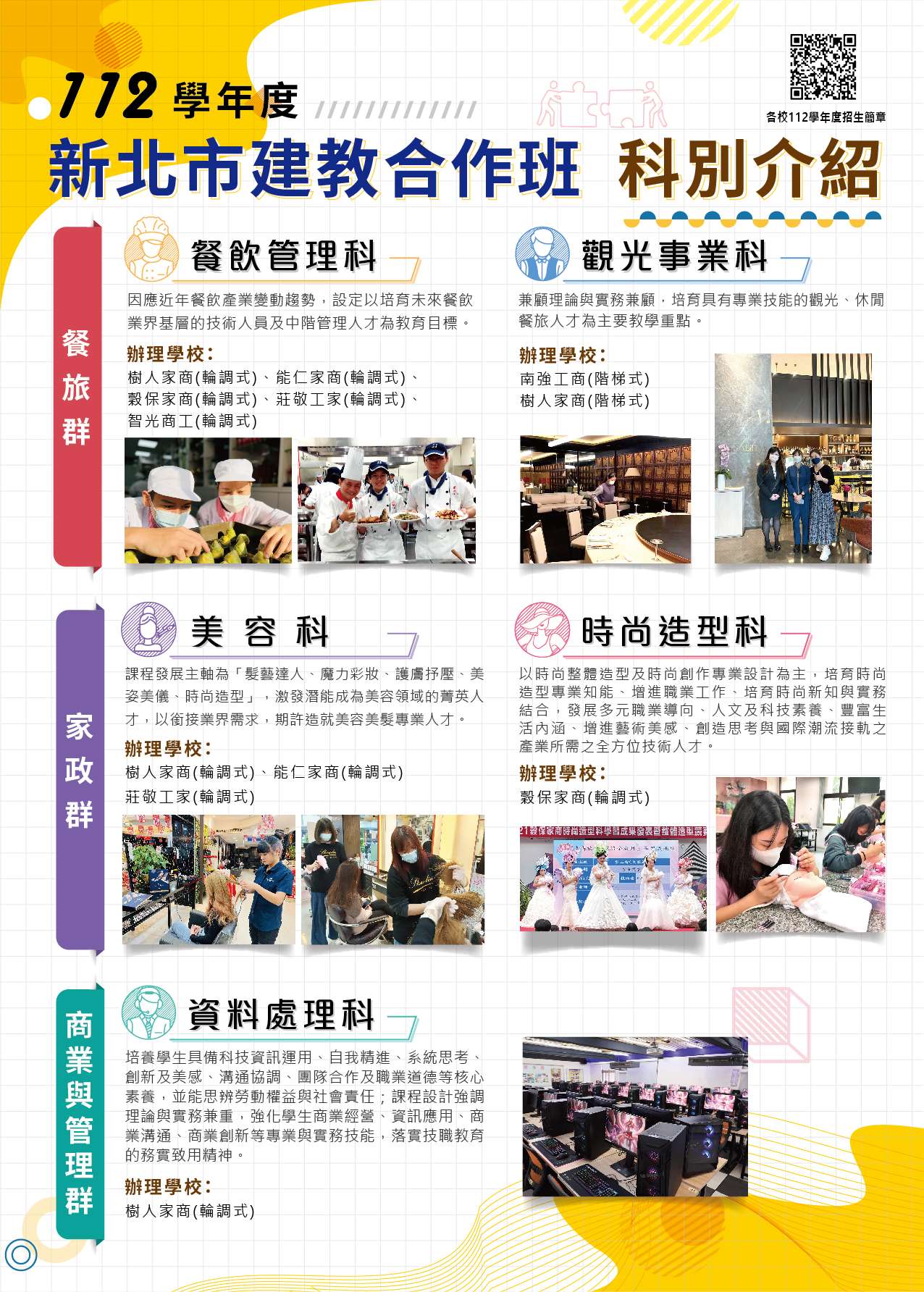 一、新北市112學年度建教合作班核定科班人數一覽表(修正版)、建教合作班介紹及招生科系介紹各1份