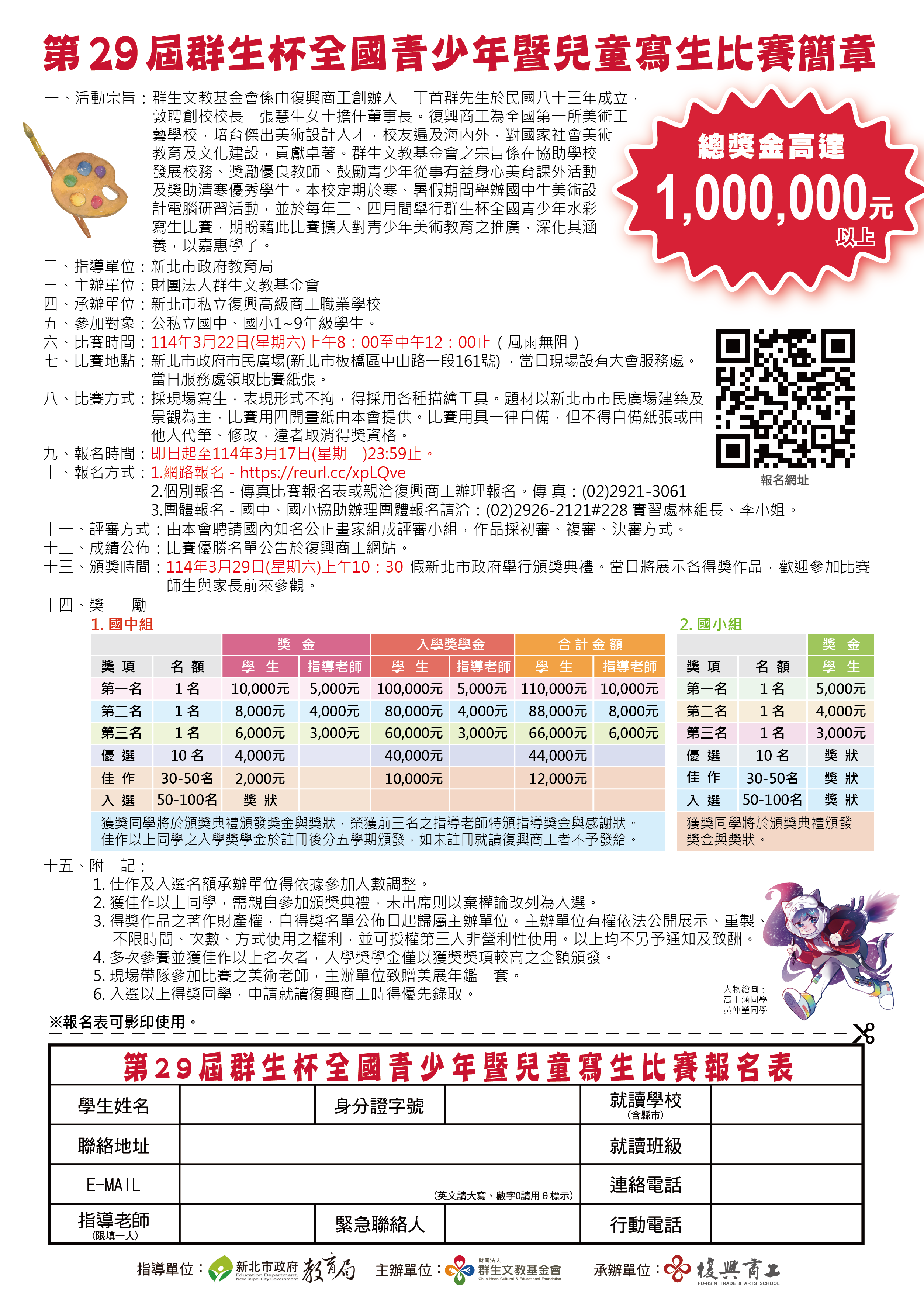 【轉知】第29屆群生杯全國青少年暨兒童寫生比賽 簡章