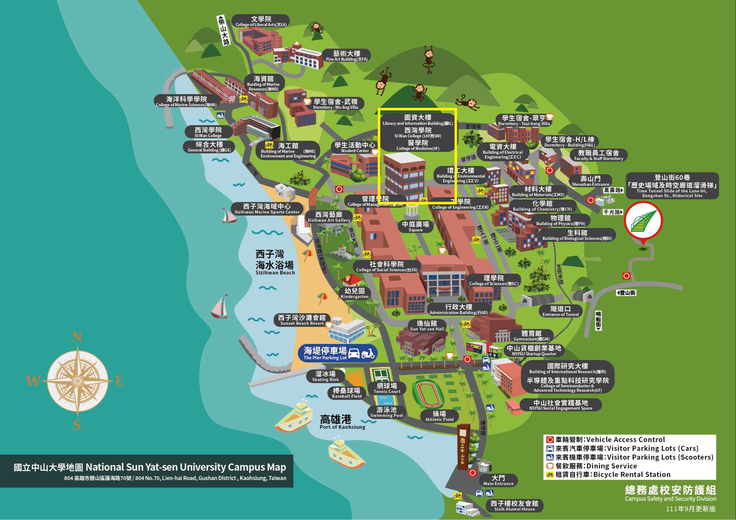 YouBike或步行15分鐘至國立中山大學圖資大樓;或請參