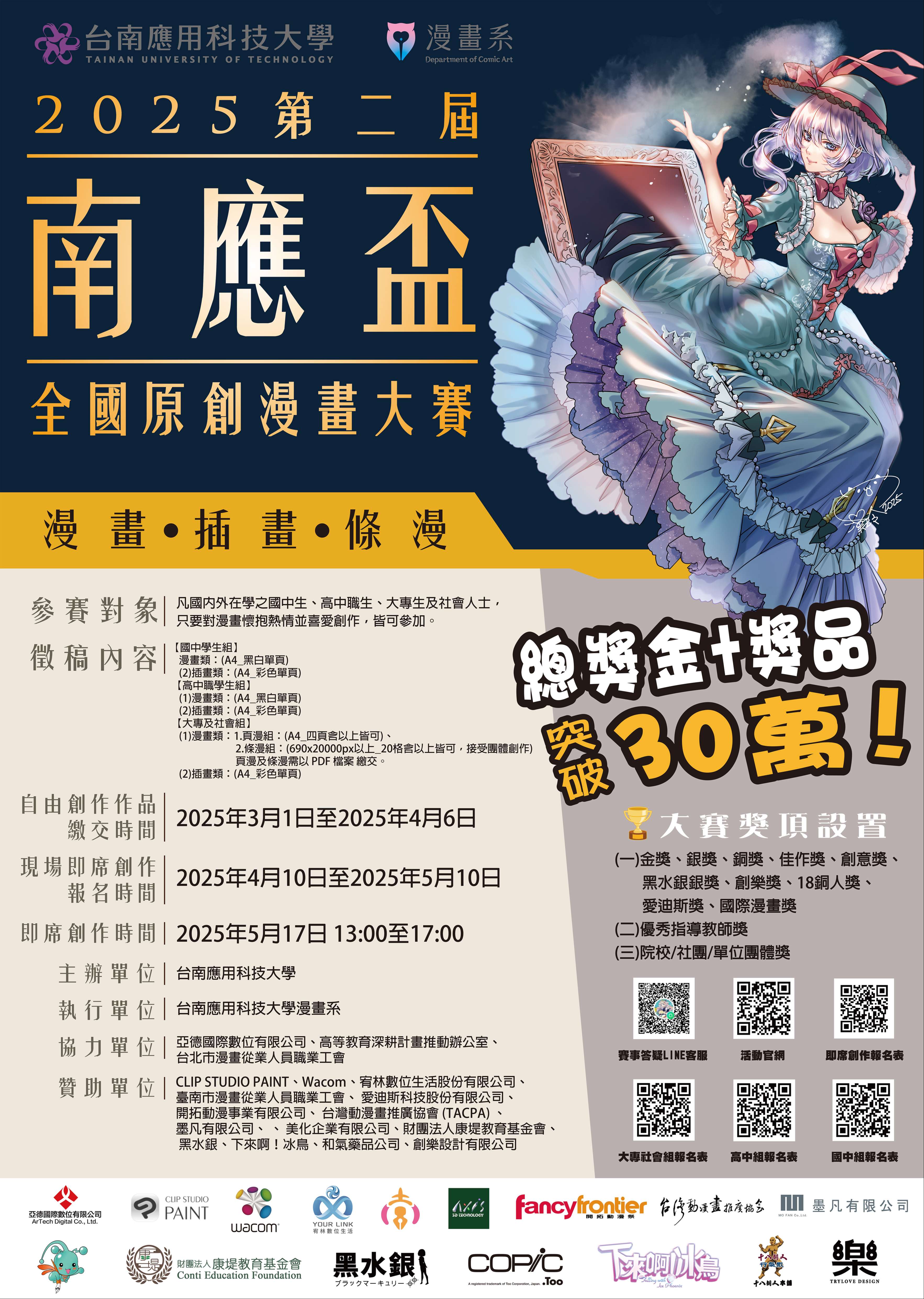 主旨:台南應用科技大學舉辦2025第二屆「南應盃」全國原創漫畫大賽,